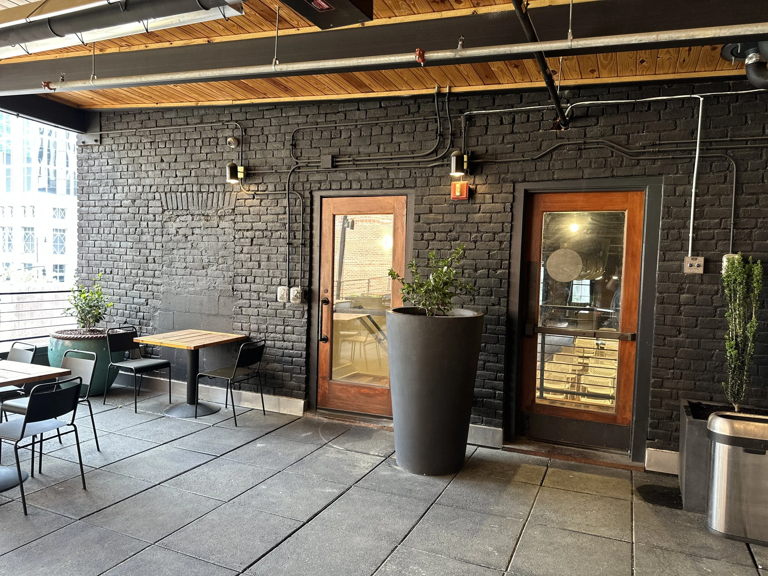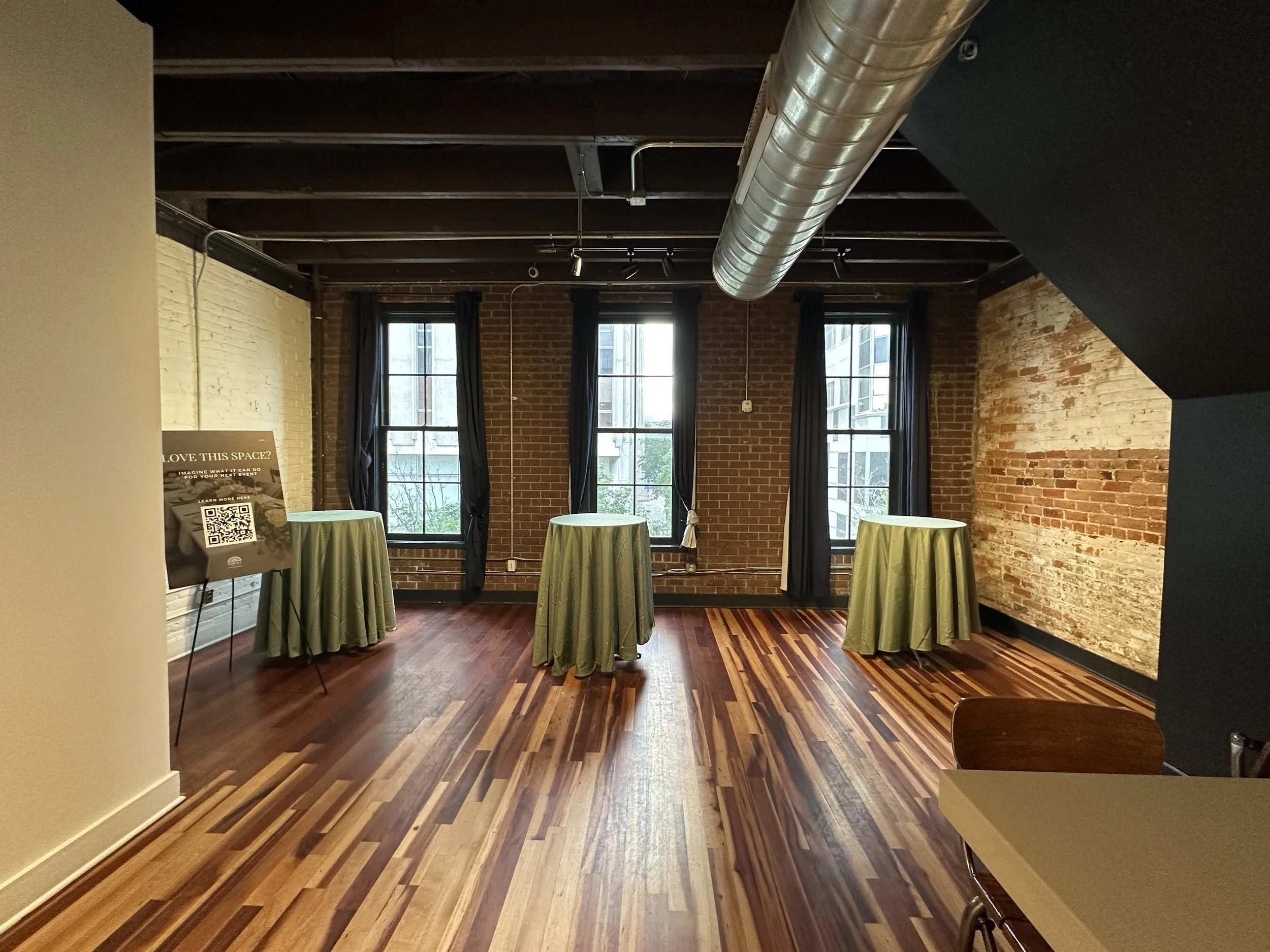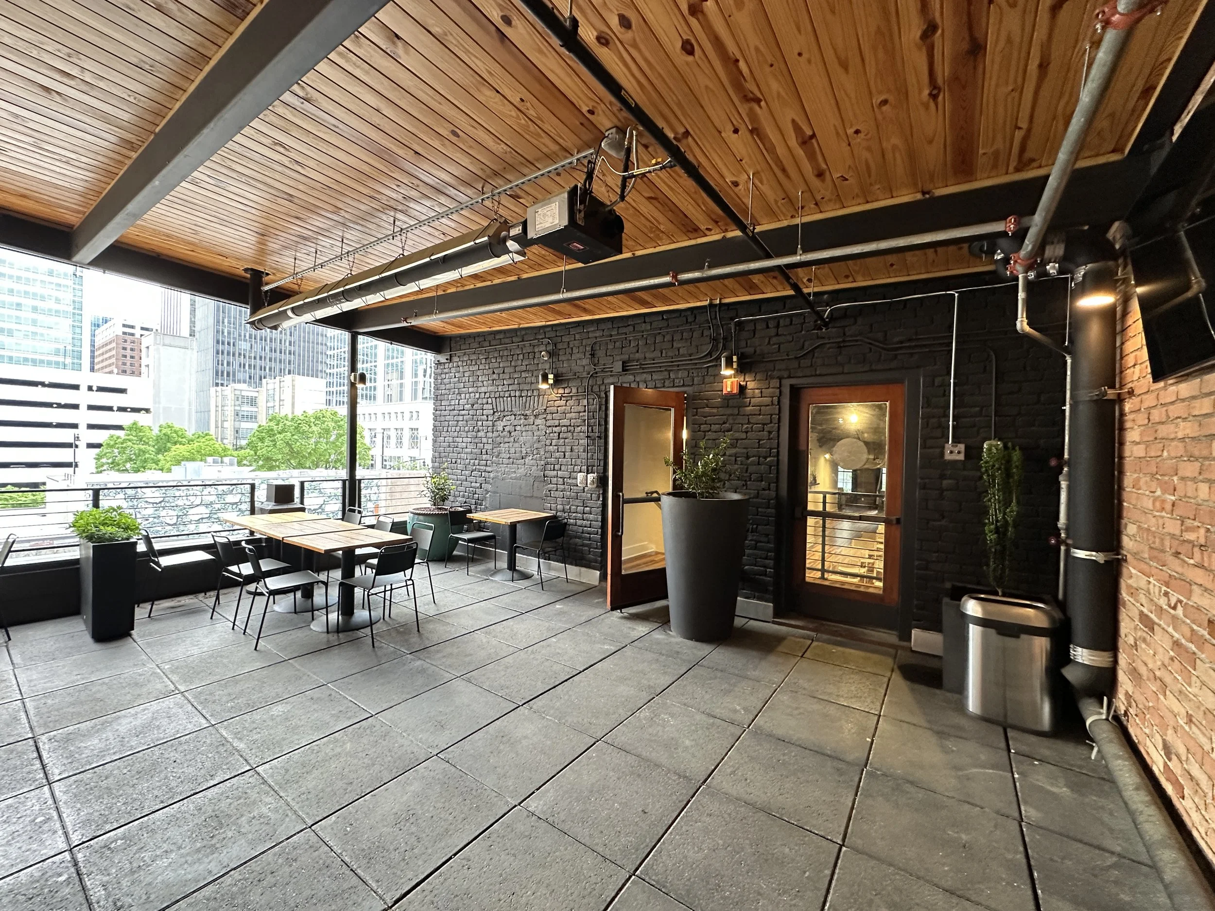 Our venue includes a covered, four-season outdoor patio with stunning views of downtown Raleigh, connected to a historic indoor lounge featuring a full bar, AV system, sound, and all the essential furniture you need. It’s a flexible space ready for any occasion—no hidden fees, no required food vendors, just your event, your way.